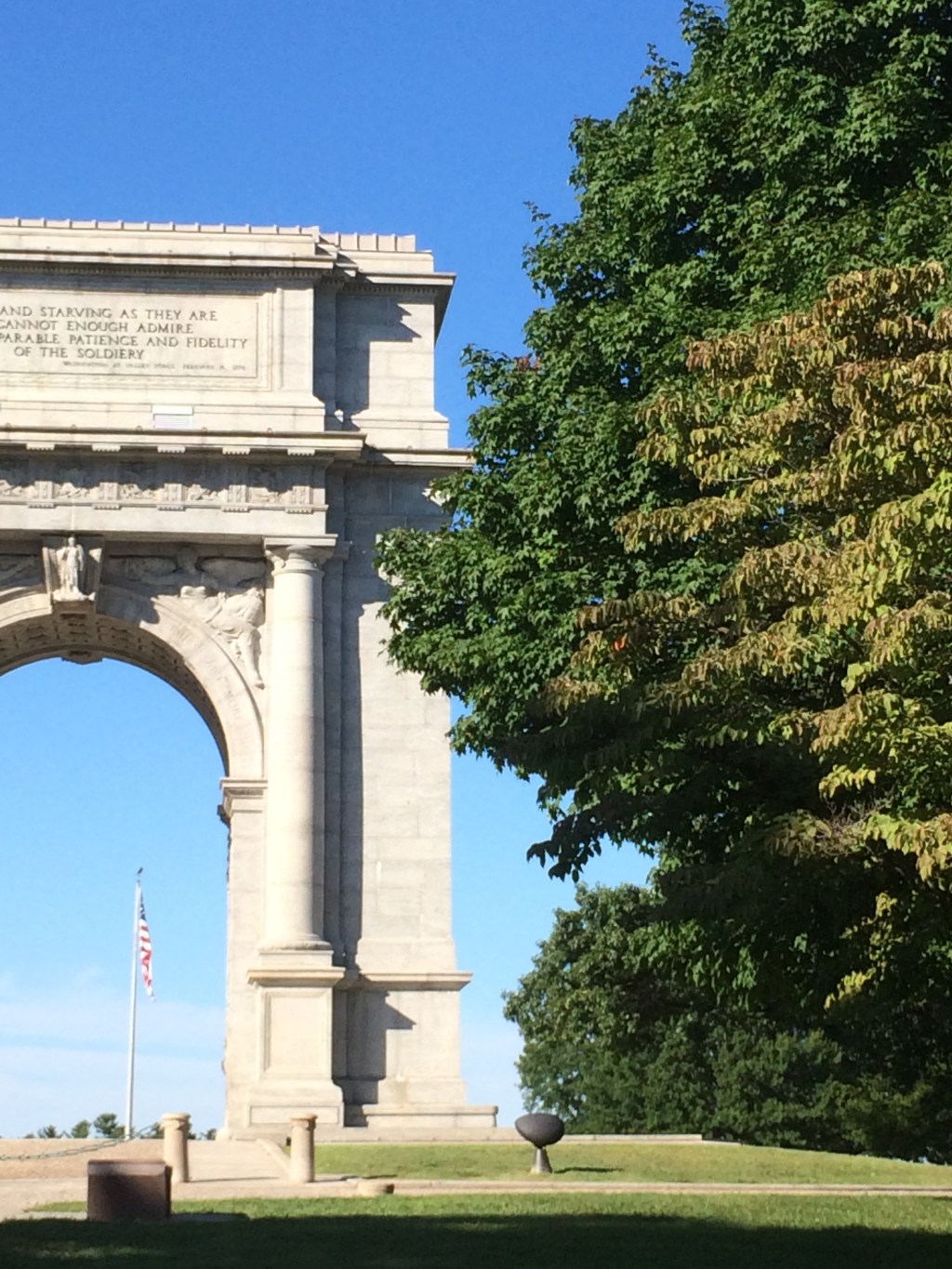At the base of a large monument to General “Mad” Anthony Wayne, a group of college kids played frisbee. In the shade of the trees around the National Memorial Arch, a group had planted camp chairs, a cooler and a full picnic. Early Sunday morning, the trails were full of runners, dog walkers, bicyclists and the occasional skateboarder (taking a chance that they wouldn’t get caught, because that’s actually not permitted). While taking a photo with General Baron von Steuben, I apologized to the young couple snuggled up on the nearby bench and promised that I wasn’t going to get them in my photo.